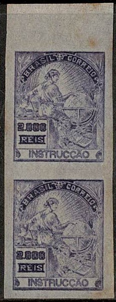 (*) 207SD ? – 2.000Rs Instrucção – Par vertical SEM FILIGRANA e sem picote. Papel fino. No catálogo de 1995, consta o selo picotado sem filigrana (# 207FvES) mas não SEM PICOTE. Não nos parece ser uma PROVA. Peça a ser estudada
