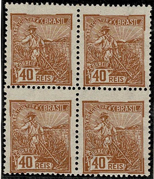 ** 230/230vA – 40Rs Agricultura – Quadra, ficando 3 selos normais e 1 com a variedade Cruzeta – 96 UF