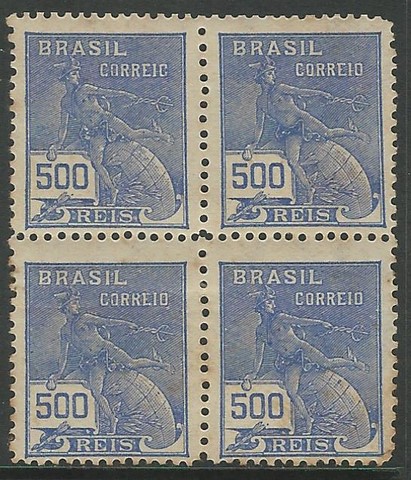 * 248BEs – 500Rs Mercúrio – Quadra, ficando 2 selos com e 2 selos sem filigrana – 600 UF