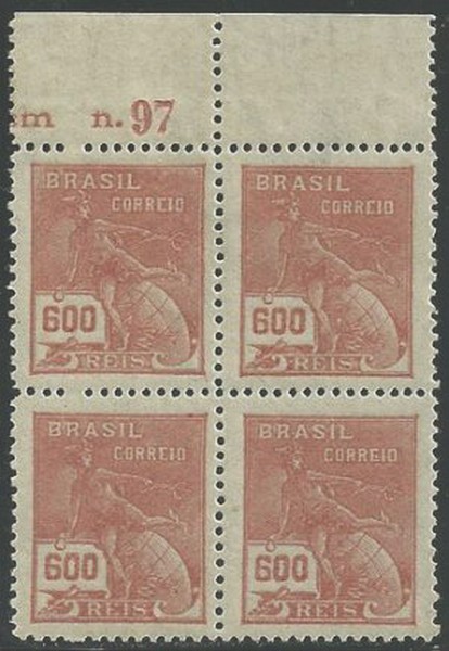 ** 249/249ES – 600Rs Mercúrio – Quadra ** !! margem superior de folha, ficando 2 selos com e 2 SEM FILIGRANA – 1.565UF