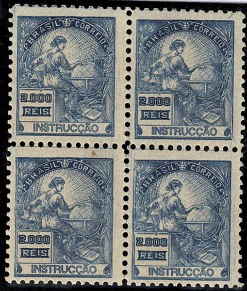 */ ** 294Es (atual) 290Es (antigo, 1995) – 2.000Rs Instrucção – Quadra, 3 selos * e 1 ** – 300 UF