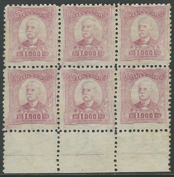 (*) 337 – 1$000 Ruy – Bloco de 6 horizontal, margem inferior de folha – (450 UF )