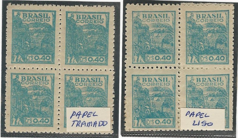 ** 466 – 0,40 Trigo – 2 quadras, uma em papel liso e outra em papel tramado.