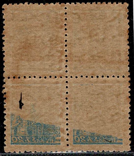* 471 – 1,20 Siderurgia – Quadra, com decalque/transparência parcial nos 2 selos inferiores.