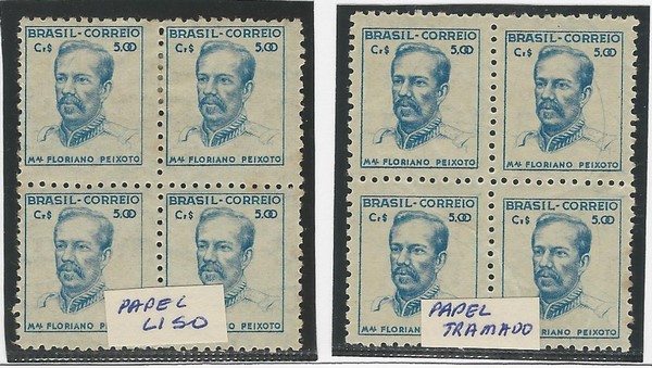 */** 473 – 5,00 Mal Floriano – 2 quadras, em papel liso * e em papel tramado (2 selos *, 2 selos **) 880 UF para os selos tipo.