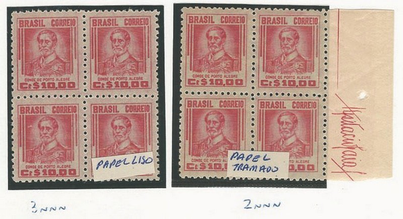 */** 474 – 10,00 Conde Porto Alegre – 2 quadras, em papel liso (2 selos *, 2 **) e tramado (3 selos ** e 1*) – 440UF para os selos tipo.