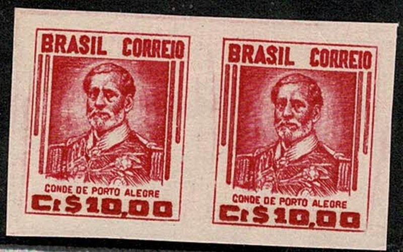 (*) 474DSD – 10,00 Conde Porto Alegre – Par horizontal sem picote e sem filigrana. Emitido sem goma – 210 UF