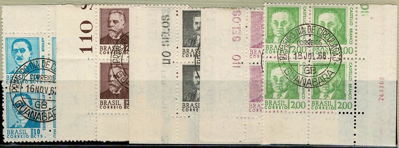 ◉ 532/536 – Série completa em quadras com carimbo de 1º dia, da Guanabara