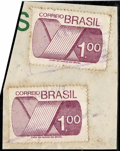 ◉ 552g – 1,00 Gravura – Fragmento com 2 selos e impressos na goma. Alguns pontos de ferrugem – 280 UF