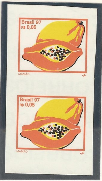 ** (751SD) – 0,05 Mamão – Par vertical, sem picote (sem o corte de destaque dos selos).