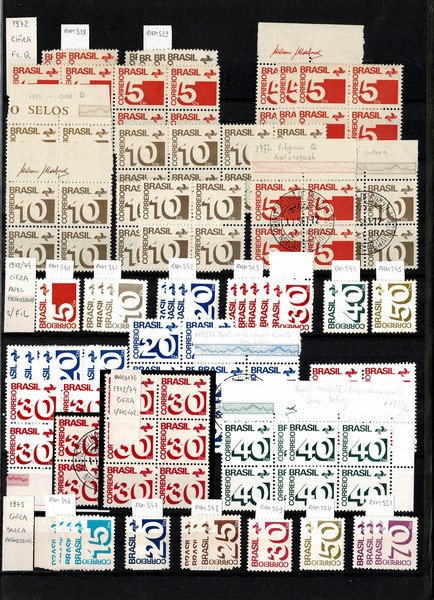 **/*/(*)/ ◉ VOVÓ à COMPROVANTE DE FRANQUEAMENTO – RHM 174 a 690 – Estoque em 2 classificadores importados (1 grande e outro médio) de fundo preto (só eles usado valem R$ 150) com acima de 2.700 itens, com e sem carimbo, entre as emissões descritas. Todos ordenados, identificados e precificados pelo catálogo RHM. No começo predominam os selos usados, depois misto e por fim sem carimbo (só com algumas quadras com carimbo de 1ª dia) Alguns itens com valor individual relevante, como sextilha + quadra com carimbo de 1ª dia do mesmo selo 543g (1.000 UF) Todo o lote está “planilhado” pelo proprietário. Não foi possível verificar se a descrição/numeração está correta e também os valores, mas acreditamos que a maioria esteja OK. Segundo o mesmo, temos acima de 20.000 UF de catálogo