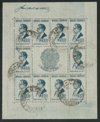 ◉ 3 IX – Estado Novo – Carimbo comum (S.Paulo) batido 6x e ve-se por + de 2x os algarismos “39” no final da data, que seria 1939 – 150 UF