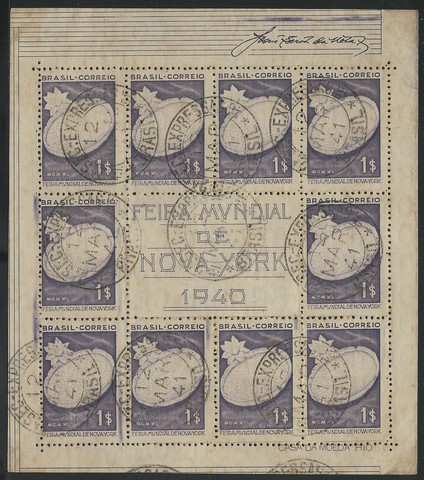 ◉ 4 a 6 – Feira de Nova York – Jogo completo com carimbo comum – Facial de 1$000 com data 1941 – 5$000 e 10$000 com carimbo de época, mas com data ilegível. Parte com pontos de ferrugem – 5.000 UF ?