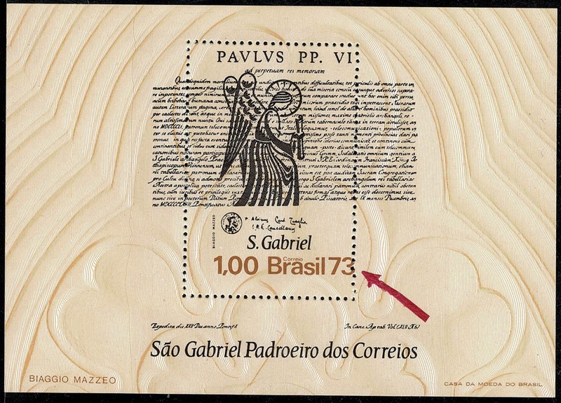 ** 35 – São Gabriel – Picote vertical do selo deslocado para a direita. O numeral 3 da data (73), chega a encostar no picote.