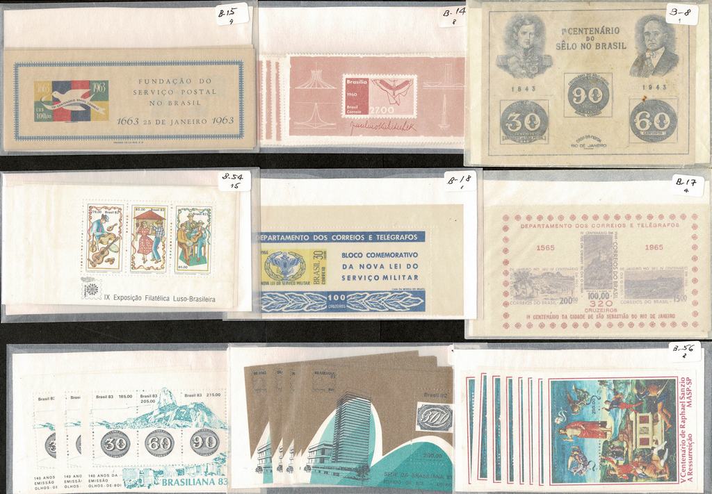 */** Pacote com 289 blocos sem carimbo, entre B8 e B84. São 43 tipos DIFERENTES identificados e separados em envelopes de celofane. Incluso B30x6 e B31 x 4. Só estes somavam R$ 2.480 pelo catálogo de 2013. O total passa de R$ 8.400 baseando-se no mesmo ano de catálogo