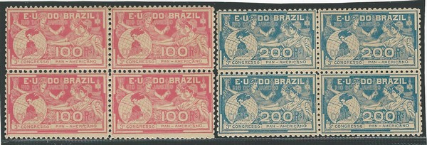 **/* 5/6 – Panamericano em quadras – 100Rs absolutamente ** e no 200Rs, 2 selos ** e 2 * – 2.760 UF cotando como 4 selos.