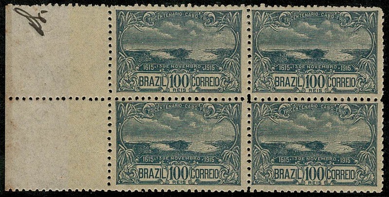 ** 10/10A – Cabo Frio – Quadra margem de folha, ficando 1 selo com a variedade – 295 UF