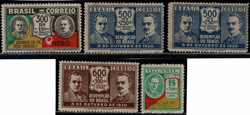 * 32A (novo sem goma) 34A, 34B, 35A e 37B – 5 diferentes variedades catalogadas da revolução de 30 – 310 UF