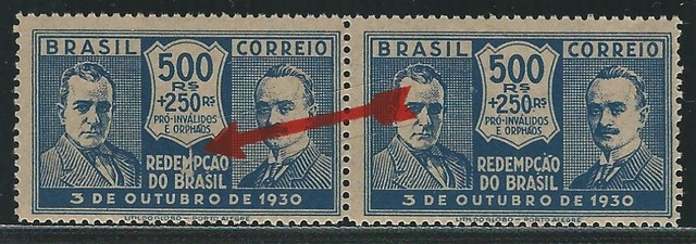 ** 34A – 500 Rs Revolução de 30 – Par horizontal, selo esquerdo com a variedade: Traço no M – 141 UF