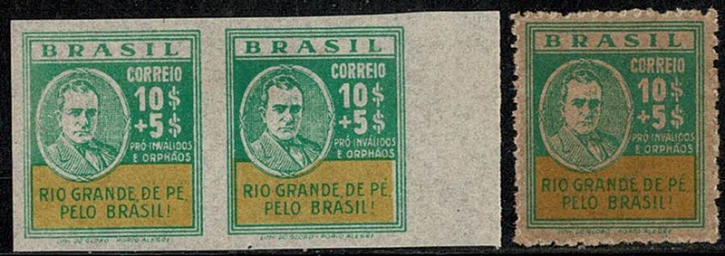 **/(*) 40 + 40SD – 10$000 Revolução de 30 – Selo isolado picotado e com a goma escurecida + par horizontal sem picote, margem de folha – 790 UF