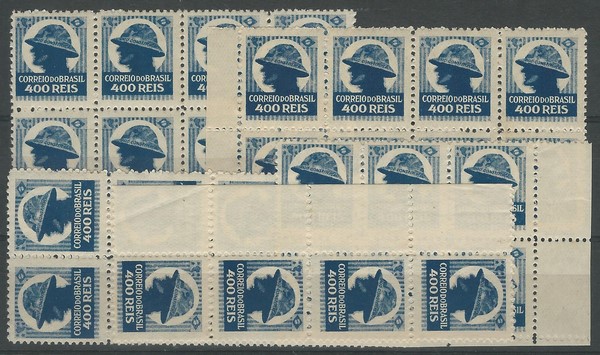** 49 – 400Rs Revolução de 32 – Lote com 34 selos, em blocos maiores e todos absolutamente ** – 1.190 UF