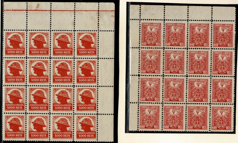 * 51 (600Rs) e 53 (1.000Rs) Revolução de 32 – Ambos em blocos de 16 selos (4×4) canto superior de folha – 160 UF