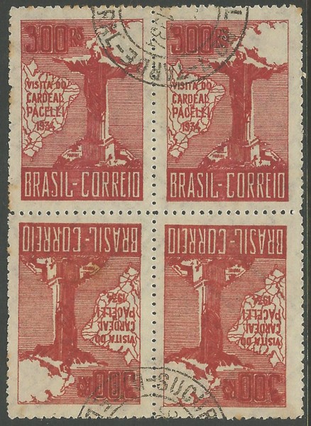 ◉ 78 – 300Rs Pacelli 1ª Tiragem – Quadra formada por 2 tete beches. Ano do carimbo: 1934 – Pontos de ferrugem – 1.300 UF