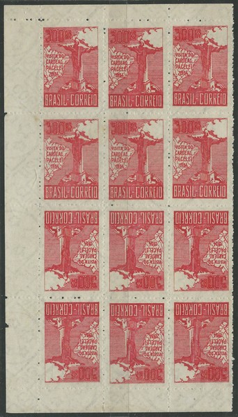 (*) 78A – 300Rs Pacelli 2ª Tiragem – Bloco de 12 selos, formado por 3 Tete Beches e 6 selos isolados – 3.270 UF
