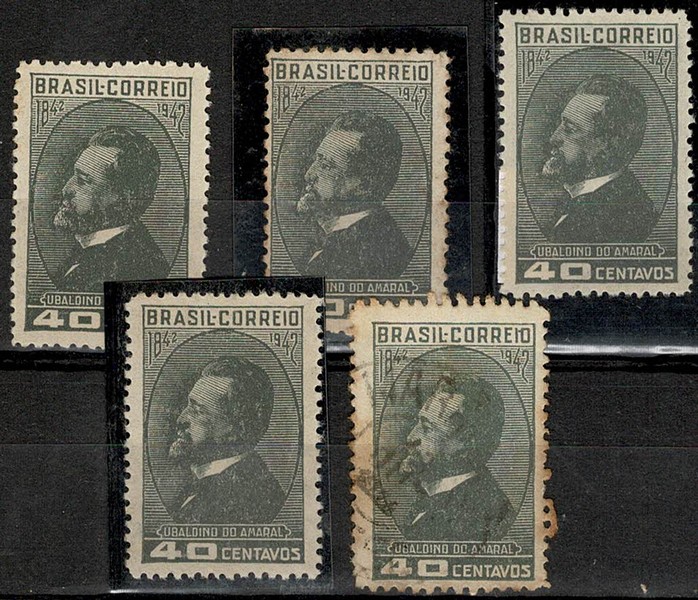 **/*/ ◉ 183A – Ubaldino do Amaral – Filigrana Q – Lote com 5 selos: 4 selos sem carimbo (3 * e 1 **) + 1 usado – 810 UF