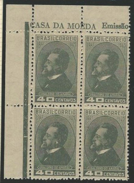 ** 183A – Ubaldino do Amaral – Quadra, na filigrana Q, canto de folha – 1.200 UF