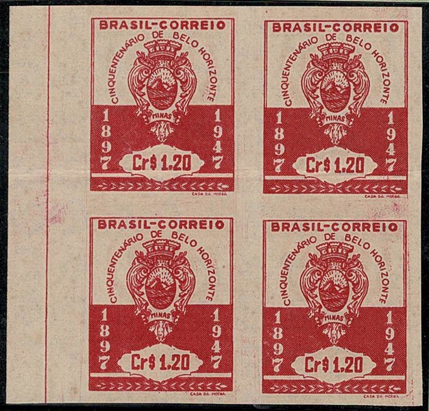 (*) 236SD – Belo Horizonte – Quadra sem picote. Vinco nos 2 selos superiores – 250 UF