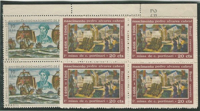 ** 595/596A – Cabral – Impresso no lado fosco – Série completa em quadras – 1040 UF