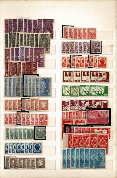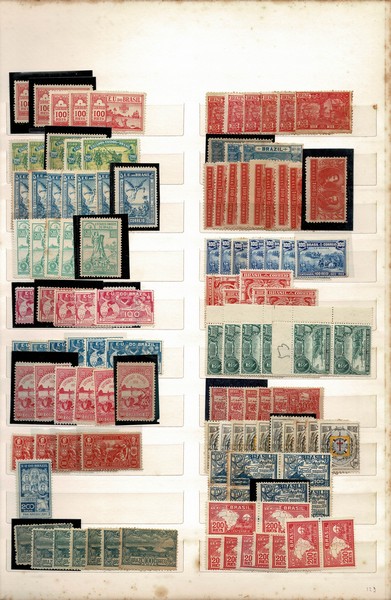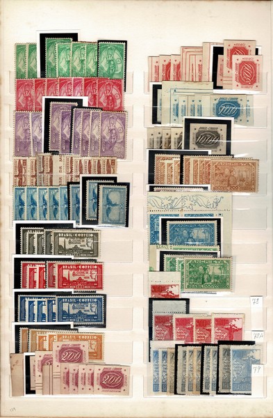 ANOS 1900 a 1994 – Grandioso estoque distribuído em 3 classificadores de formato grande, com acima de 10.000 SELOS e 1.750 tipos DIFERENTES, entre os anos mencionados. Todos sem carimbo e nas 3 qualidades: Sem goma, com ela alterada de alguma forma e com ela absolutamente plena. Absurdo valor de catálogo, visto que temos dezenas e dezenas de mil unidades filatélicas de catalogo, onde podemos destacar: Panamericano x 5 completo, C7 x 6, Revolução de 30, Revolução de 32 x 4 completa, Pacelli 300Rs 1ª Tiragem, Pacelli 2ª tiragem x 4 no 300 Réis e x 10 no 700 Réis, Turismo x 6 completa + os bons anos 70 diversas vezes completo. No máximo temos 10x igual de cada selo. Diferentemente do que aparece em estoques deste tipo, neste aqui, temos pouquíssima quantia dos baratos anos 60 e dos baratos anos 70 e 80, concentrando-se + no padrão Réis e no começo dos anos 70. Com paciência, o potencial comprador pode facilmente duplicar o valor pago, fazendo lotes por décadas, desmembrando períodos, vendendo por séries completas etc. Fotografamos apenas 6 folhas para uma visualização do material.
