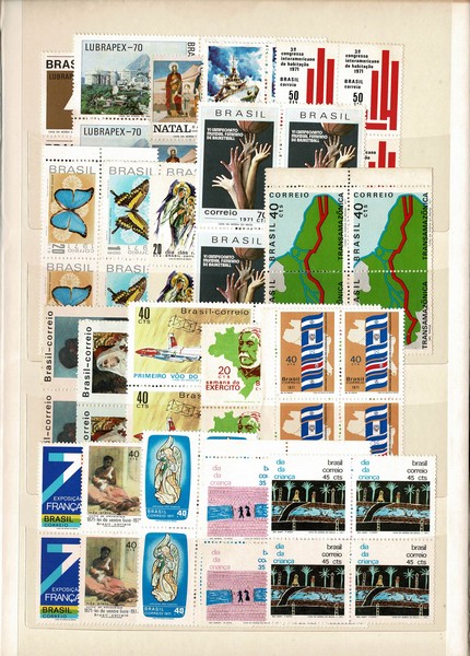 QUADRAS SEM CARIMBO – Coleção dentro de classificador + algumas folhas avulsas, contendo com 510 DIFERENTES, todos sem carimbo e em 3 qualidades: sem goma, com a goma alterada e com ela absolutamente perfeita. Começa no ano 1900 (C1) e vem até co começo do Real (Ano 1994) Diversos medianos valores, além dos melhores anos 70 estarem bem representados. Faltam muitas quadras baratas, pois pula do ano 1958 para o ano de 1968 e neste período, a grande maioria dos selos é muito barato