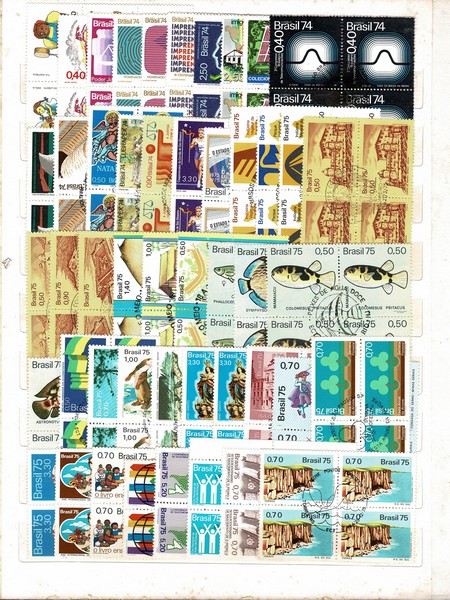 ◉ QUADRAS COM CARIMBO COMEMORATIVO DÉCADA 70 – Coleção em folhas de classificador com 248 DIFERENTES. 60 delas dos bons anos 1970 a 1974.Séries completas etc. Bom valor de catálogo se somado uma a uma.