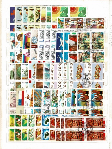 ◉ QUADRAS COM CARIMBO COMEMORATIVO DÉCADA 80 – Coleção em folhas de classificador com 412 DIFERENTES