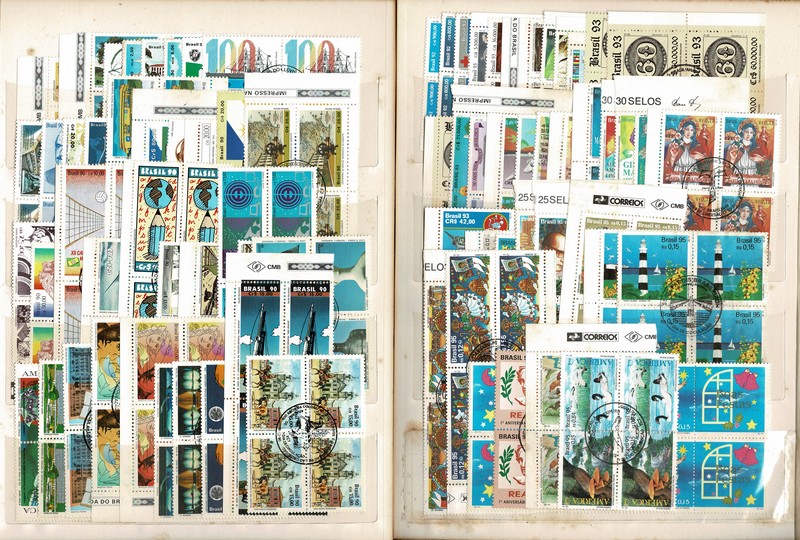 ◉ QUADRAS COM CARIMBO COMEMORATIVO DÉCADA 90 – Coleção em folhas de classificador com 200 DIFERENTES entre anos 1990 e 1995.
