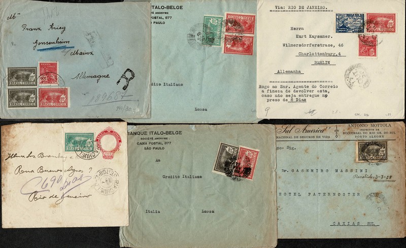 EMISSÃO CAFÉ (C21/23) – Lote com 6 envelopes circulados para estudo, sendo 2 internamente e 4 ao exterior