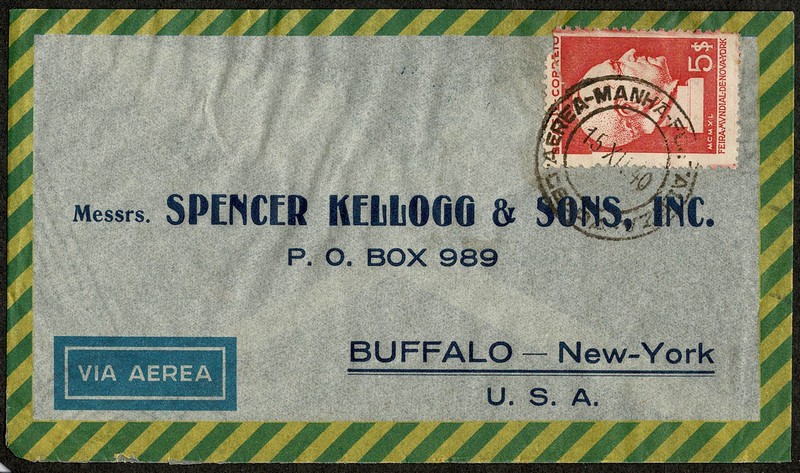 Ano 1940 – Envelope circulado do Ceará para os Estados Unidos. Franquia isolada selo 154 (5$ Feira de Nova York) com defeito no picote.