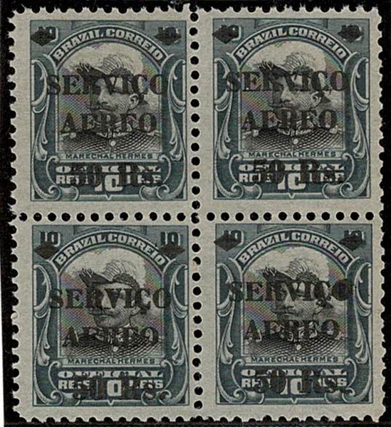(*) 1A8 – 50/10 – O de Serviço Cheio – Quadra, 1 selo com a variedade – 220 UF