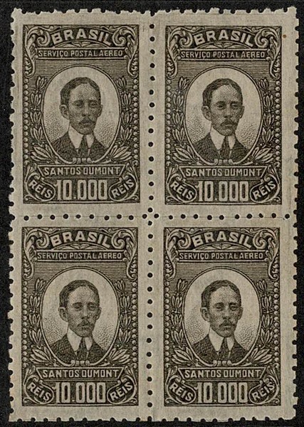 **/* 25 – Santos Dumont – Quadra, 2 selos superiores só com marca de charneira e os 2 inferiores ** – 580 UF = Cerca de R$ 3.200..