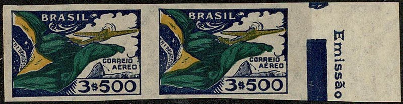 * 31SD – 3$500 Bandeira Nacional – Par margem de folha e sem picote – 350 UF = Cerca de R$ 1.900.