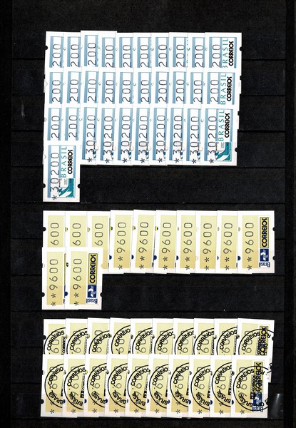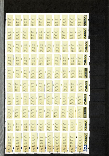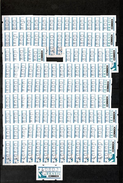 **/ ◉ 4/5 – Brasiliana 1993 – Grande estoque com ao todo 572 etiquetas, assim dividido. Da SE4 (Logo) Facial 9600 (12 selos **) Facial 9600 (40 com carimbo comemorativo) Facial 30200 (14 selos **) e Facial 40800 (171 ! selos **) Da SE5 (Cristo) Facial 9600 (33 selos **) Facial 9600 (90 com carimbo comemorativo) Facial 30200 (91 ! selos **) e Facial 40800 (121 ! selos **) Total 237 + 335 = 572 com 9.724 UF de catálogo