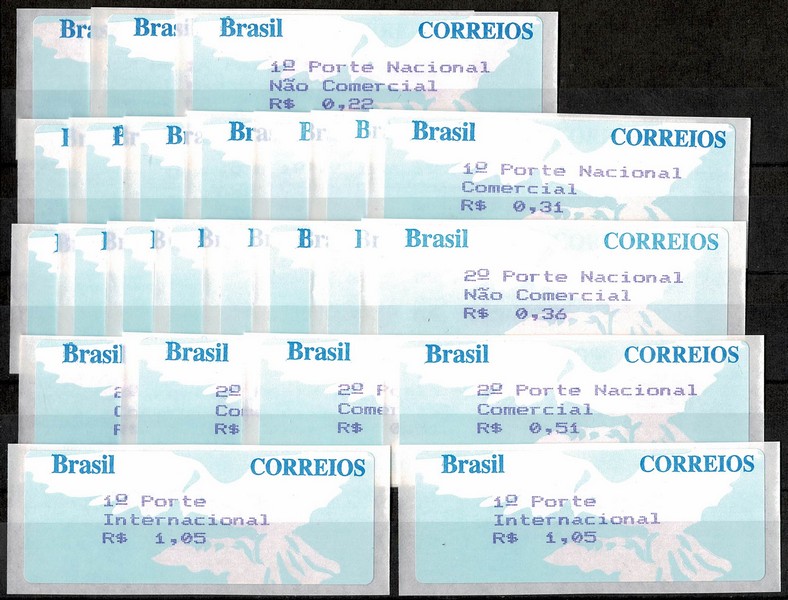 ** 7A/11A – Pomba Branca – Lote com 24 etiquetas, assim dividido pelos faciais: 0,22 (3) 0,31 (7) 0,36 (8) 0,51 (4) e 1,05 (2 etiquetas) 1.200 UF.