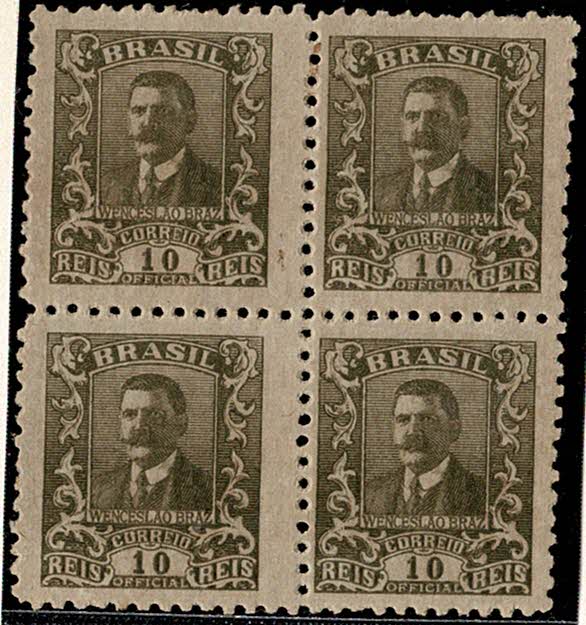 **/* 30Es – 10Rs Wenceslau Braz – Quadra, sem filigrana nos 4 selos…