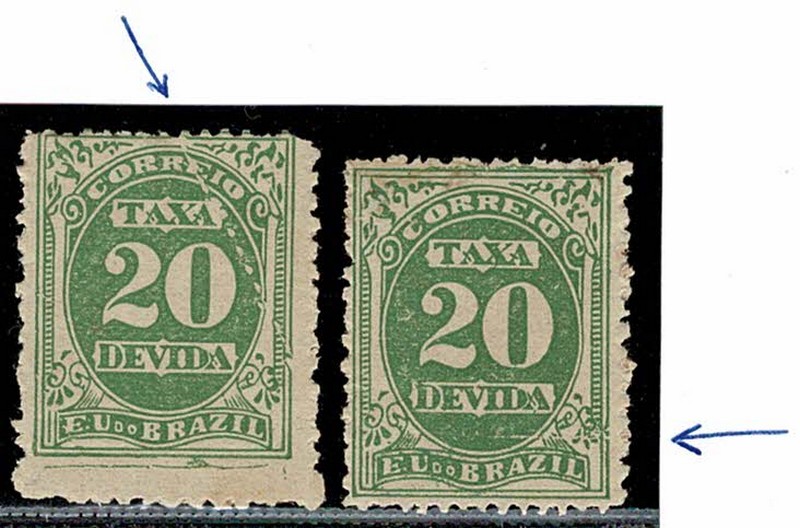 * 19A – 20Rs – 2 selos (bem limpos) com diferentes visiveis riscos de chapa..