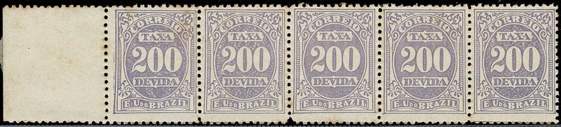 * 22B – 200Rs em papel gessado – Tira de 5 horizontal – 80 UF = Cerca de R$ 440..