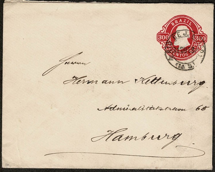 11 – 300Rs – Ano 1892 – Circulado do Rio de Janeiro para a Alemanha, com chegada – 120 UF = /- R$ 660.