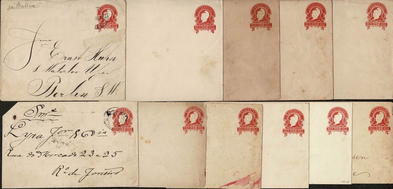 ENVELOPES – EMISSÃO ALEGORIA DA REPÚBLICA ANO 1892 – Lote com 11 peças entre EN15 e EN20, sendo 9 sem uso e 2 circuladas (1 com selo caído) Qualidade mista. Pede-se verificar