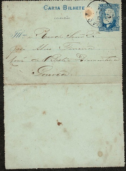 3 – 100Rs – Ano 1886 – Circulado de Calambão (MG) para Gouvea. Pontos de ferrugem – 225 UF = /- R$ 1.200.